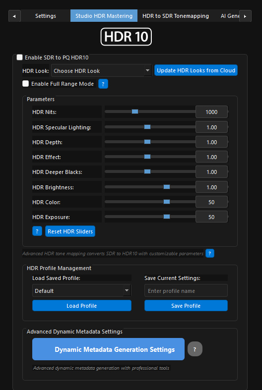 - Profiles for Custom Settings: Save and load configurations for HDR Mapping, upscaling, interpolation, and post-processing with ease.
